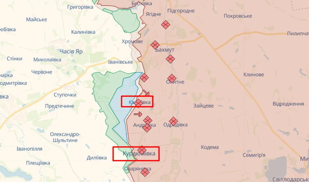Силы обороны выравнивают фронт на юг от Бахмута (фото deepstatemap.live)