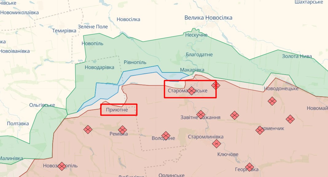 Силы обороны подошли к Приютному и Старомайорскому (фото deepstatemap.live)
