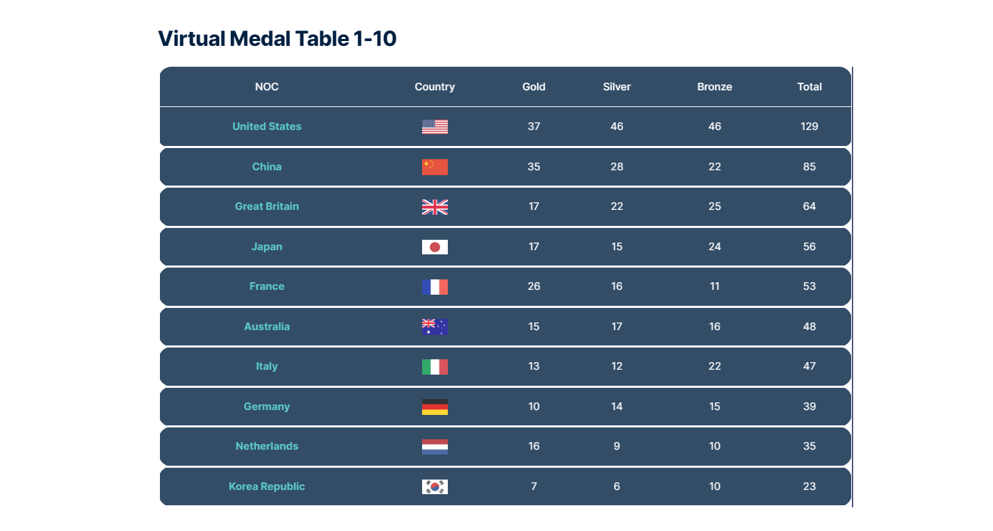 Фото: Виртуальная таблица топ-10 сборных по медалям Олимпиады-2024 (nielsen.com)