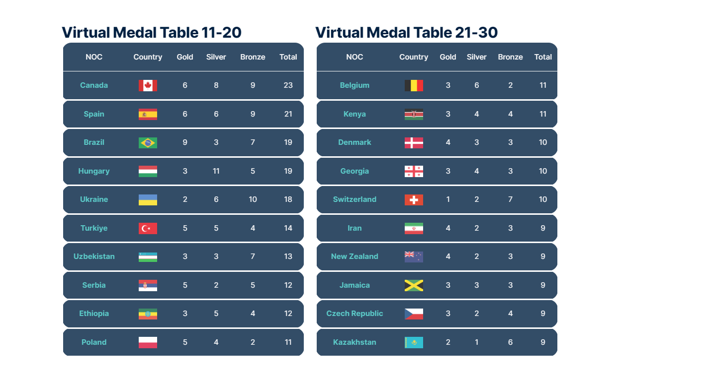 Фото: Виртуальная таблица топ-30 сборных по медалям Олимпиады-2024 (nielsen.com)