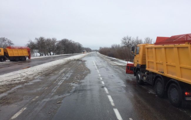 "Спостерігаються перемети (протяжністю близько 30 км, в яких заблоковано до 300 великогабаритних транспортних засобів, рух у напрямку Києва закрито", - повідомили рятувальники.