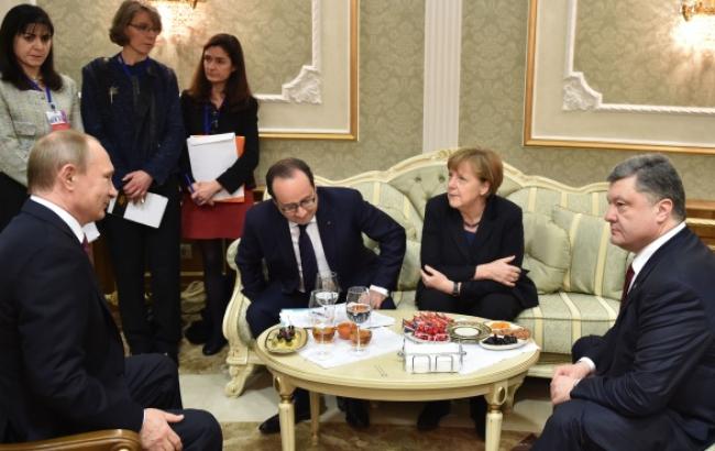 "У переговорах з врегулювання ситуації в Україні беруть участь Володимир Путін, Ангела Меркель, Франсуа Олланд і Петро Порошенко", - сказано в повідомленні.