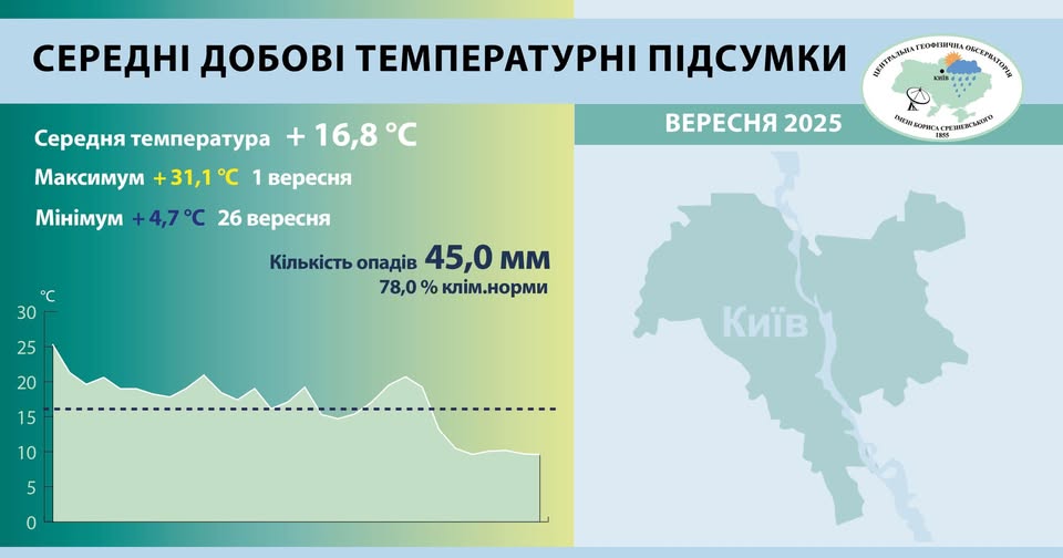 Сентябрь 2025 года стал 13-м среди самых теплых в истории Киева
