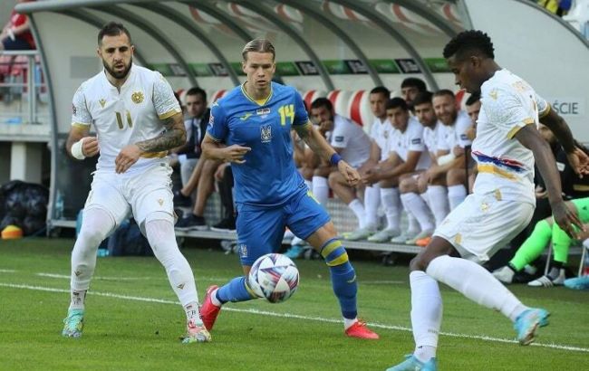 Фото: Михаил Мудрик (в центре) против сборной Армении летом (uaf.ua)