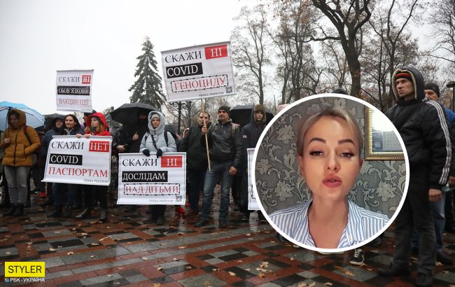 Дівчина також відкрито заявляє, що отримує фінансування від "братів-слов'ян" з Москви на свої акції проти вакцинації.