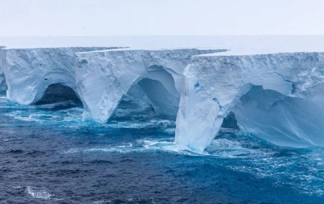В крупнейшем в мире айсберге образовались арки и пещеры (фото)