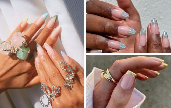 Также можно покрыть кончики ногтей на одной руке фиолетовым оттенком, а на второй - синим. Еще один вариант - голографический френч.