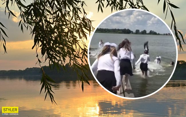 У селі Борове місцеві школярки оригінально відсвяткували випускний. Вони стрибнули у воду в шкільній формі та із бантами на голові.